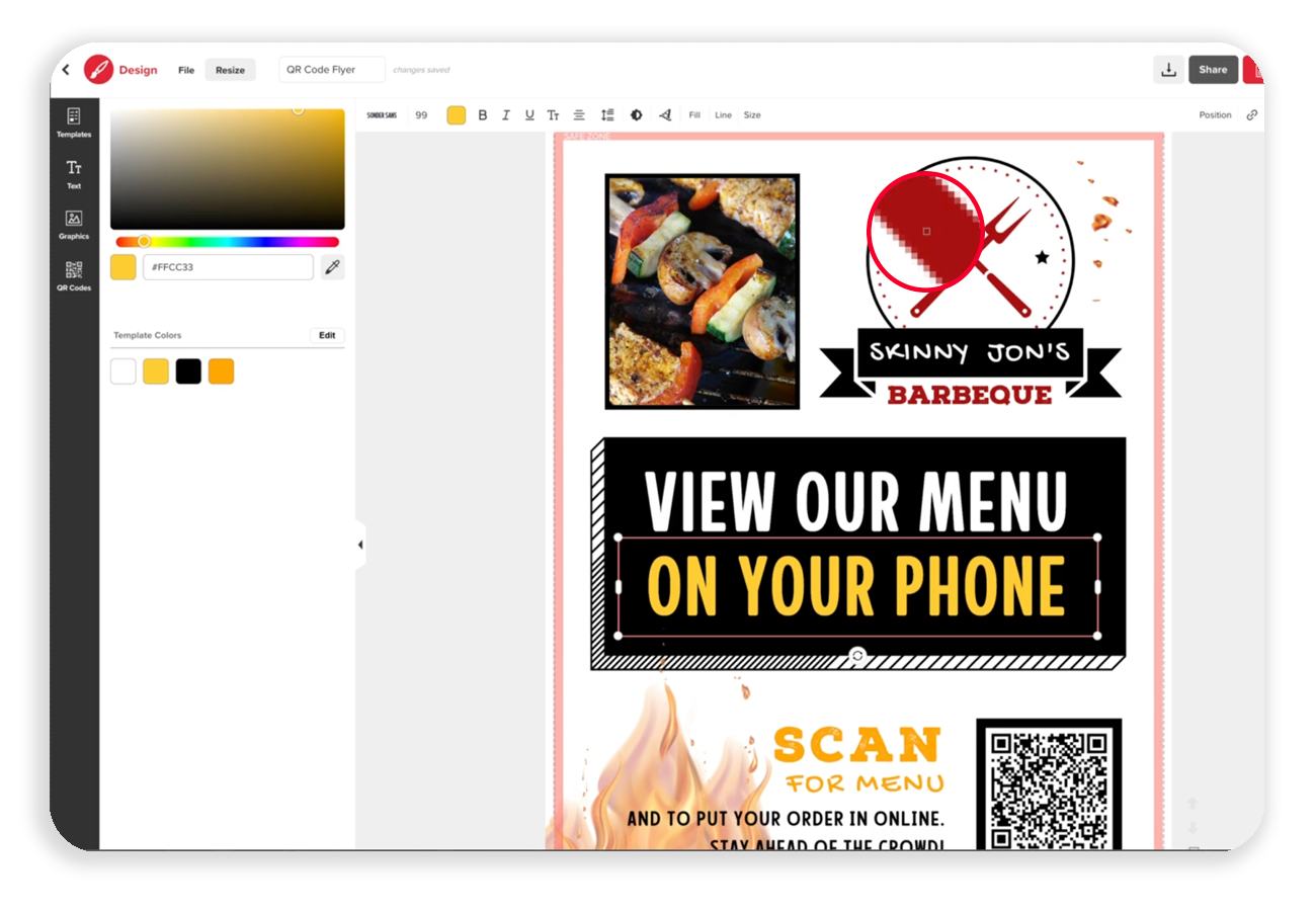 There are several ways to change text color. Learn how to choose a different color for the text on a design.