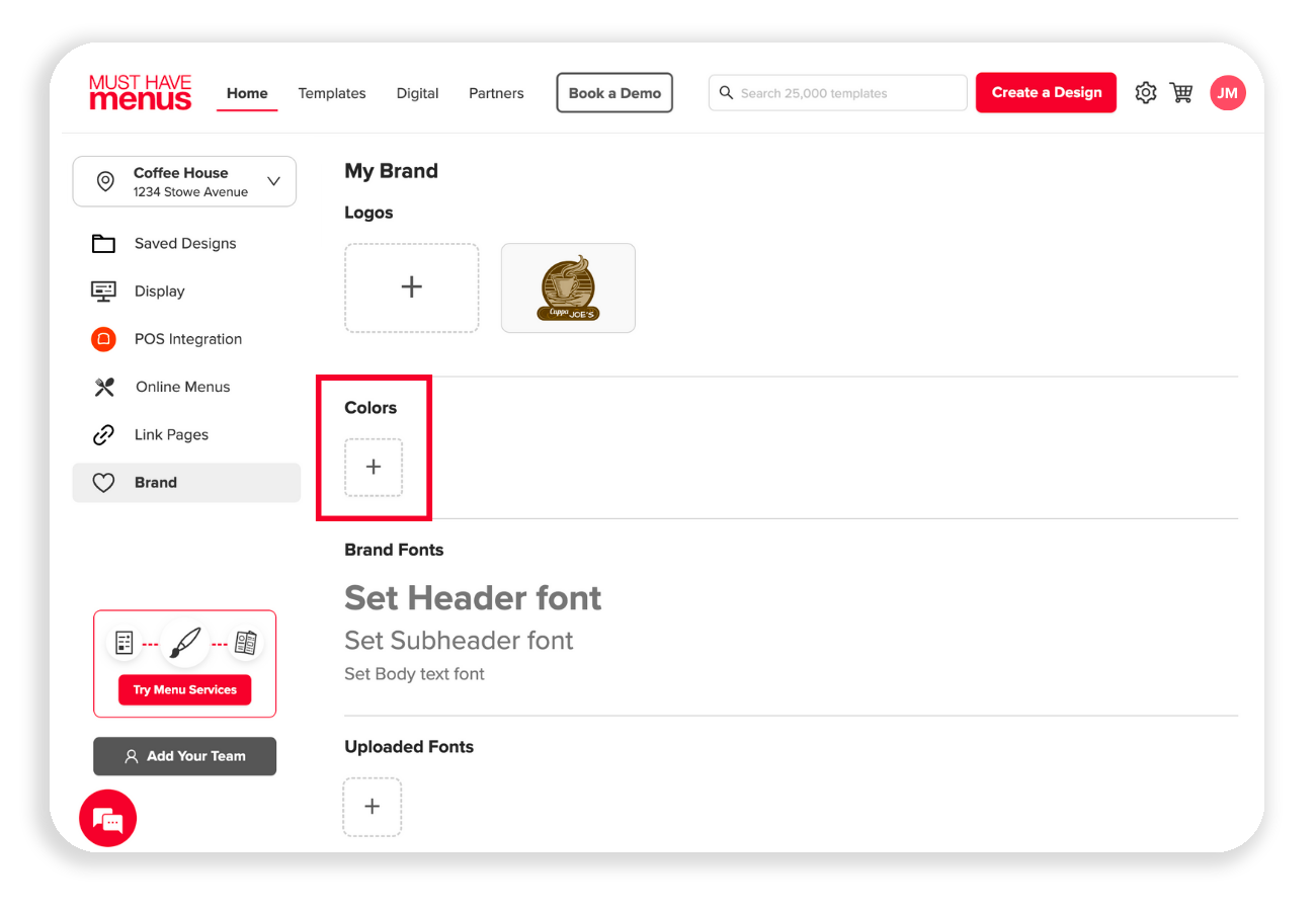 Learn how to upload a logo within Brand. The Brand feature makes it easy to organize logos, brand colors, and favorite fonts all in one place. Upload a Logo From the Home page, select Brand from the left panel. Once on My Brand, select the + tile ...