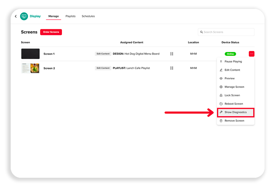 From the dropdown, select Show Diagnostics.