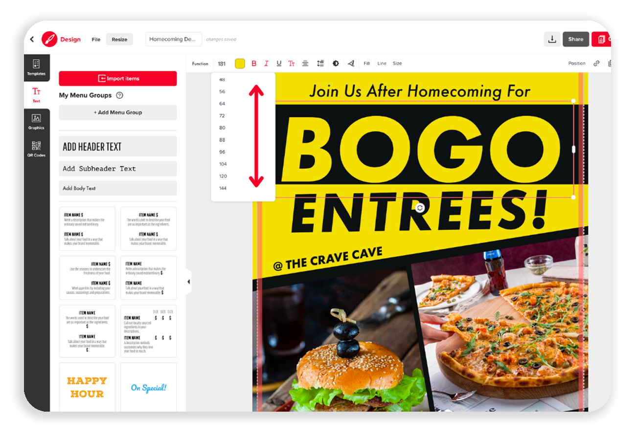 Learn how to increase or decrease the size of the text on your template.