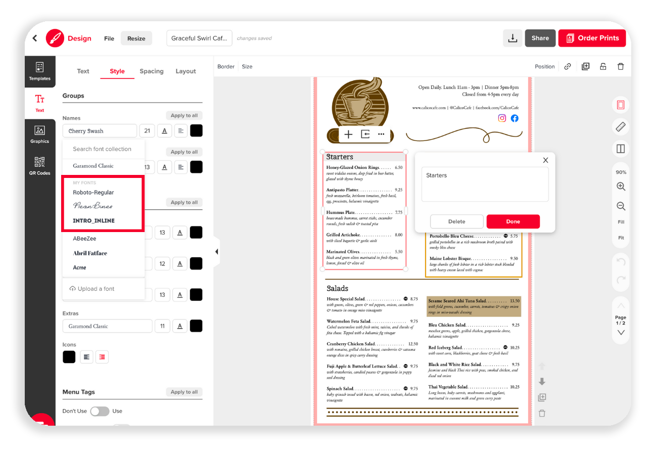 Learn how to use Font Styling within Menu Item Names and Descriptions to accentuate specific words or phrases within your text by bolding, underlining, or italicizing them. Learn about Menu Groups here. Applying Font Styling within Menu Item ...